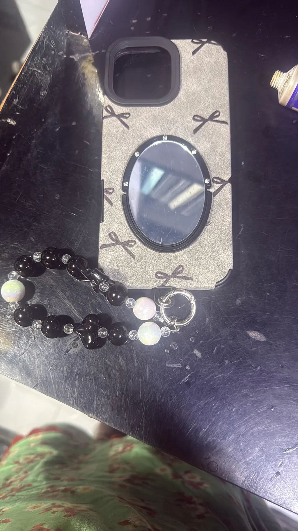 Add a touch of luxury to your phone with the Elegant Mirror Charm Case ✨. Designed with a soft suede-texture finish and chic printed details — choose from Butterfly or Bow patterns for a stylish look. The built-in oval mirror adds both convenience and glam, while the detachable beaded wrist strap (featuring glossy black and pearl-like beads) provides comfort and extra grip. Perfect for anyone who loves fashion and function in one elegant accessory. 💎📱