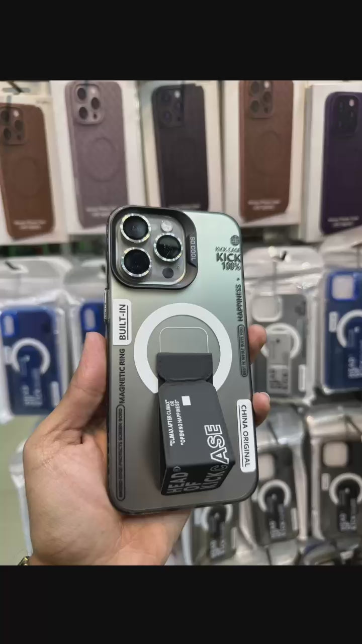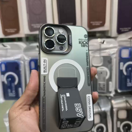 It sounds like you're referring to a type of phone case for iPhones with a bracket or mount feature. These are often designed to securely hold or mount the phone to other objects, such as stands, vehicles, or other surfaces. Here are some potential types you might be looking for: