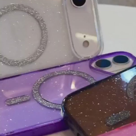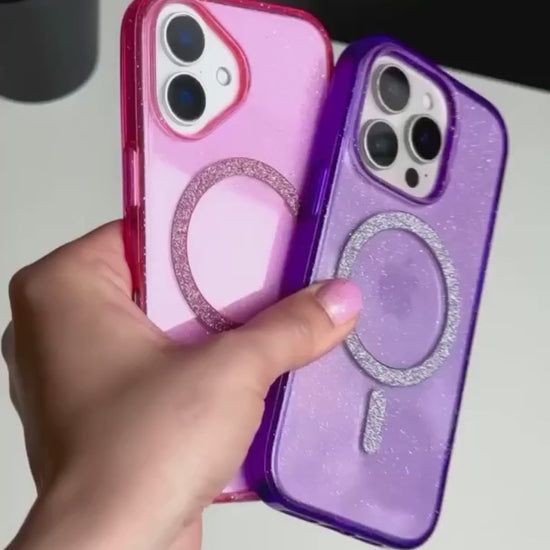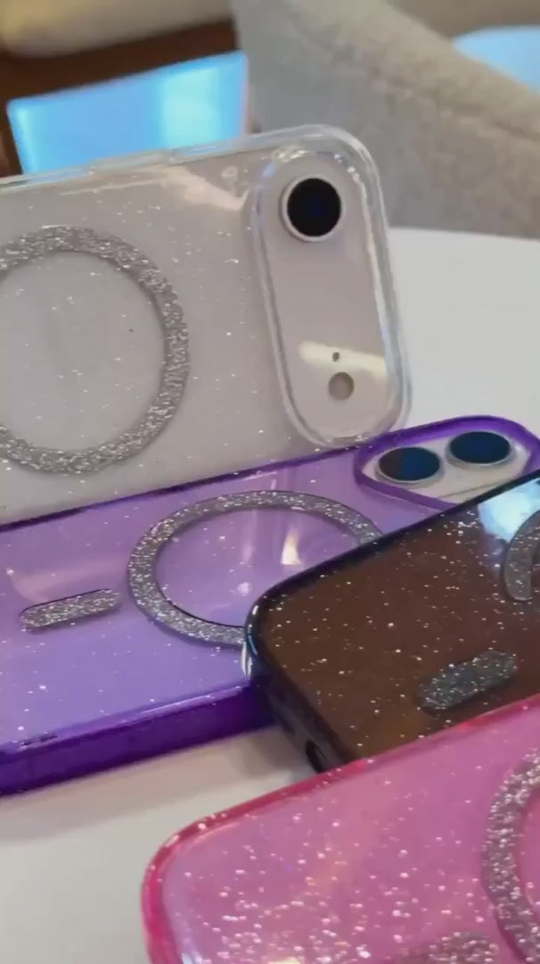 Elevate your device protection with the New Glitter Shimmer MagSafe Case, featuring a sparkling diamond-inspired design in elegant pink, purple, and silver hues. Crafted with soft silicone sides for a secure grip and enhanced durability, this case combines style with MagSafe compatibility for effortless attachment. Its subtle shimmer adds a touch of